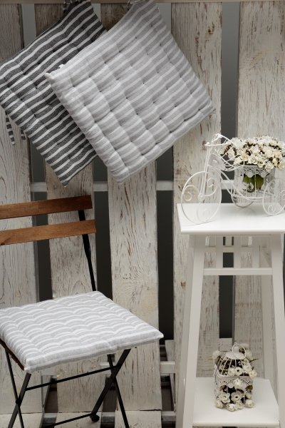 Αξεσουάρ καρέκλας με επιπλέον παχύ γέμισμα από 100% βαμβάκι. Είναι διπλής όψης και διαθέτει κορδόνια που μπορούν να δεθούν στην καρέκλα. Το γέμισμα προσφέρει απαλότητα ακόμα και στις πιο σκληρές καρέκλες.