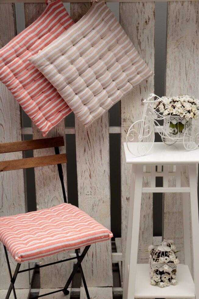 Αξεσουάρ καρέκλας με επιπλέον παχύ γέμισμα από 100% βαμβάκι. Είναι διπλής όψης και διαθέτει κορδόνια που μπορούν να δεθούν στην καρέκλα. Το γέμισμα προσφέρει απαλότητα ακόμα και στις πιο σκληρές καρέκλες.