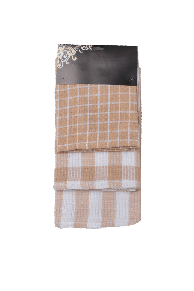 Πετσέτα κουζίνας από βαμβάκι, σετ 3 τεμαχίων.- Μπεζ-Λευκό