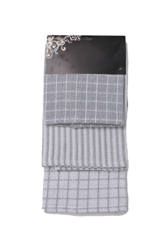 Πετσέτα κουζίνας από βαμβάκι, σετ 3 τεμαχίων. – Γκρι-Λευκό