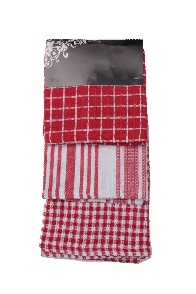 Πετσέτα κουζίνας από βαμβάκι, σετ 3 τεμαχίων.- Κόκκινο-Λευκό