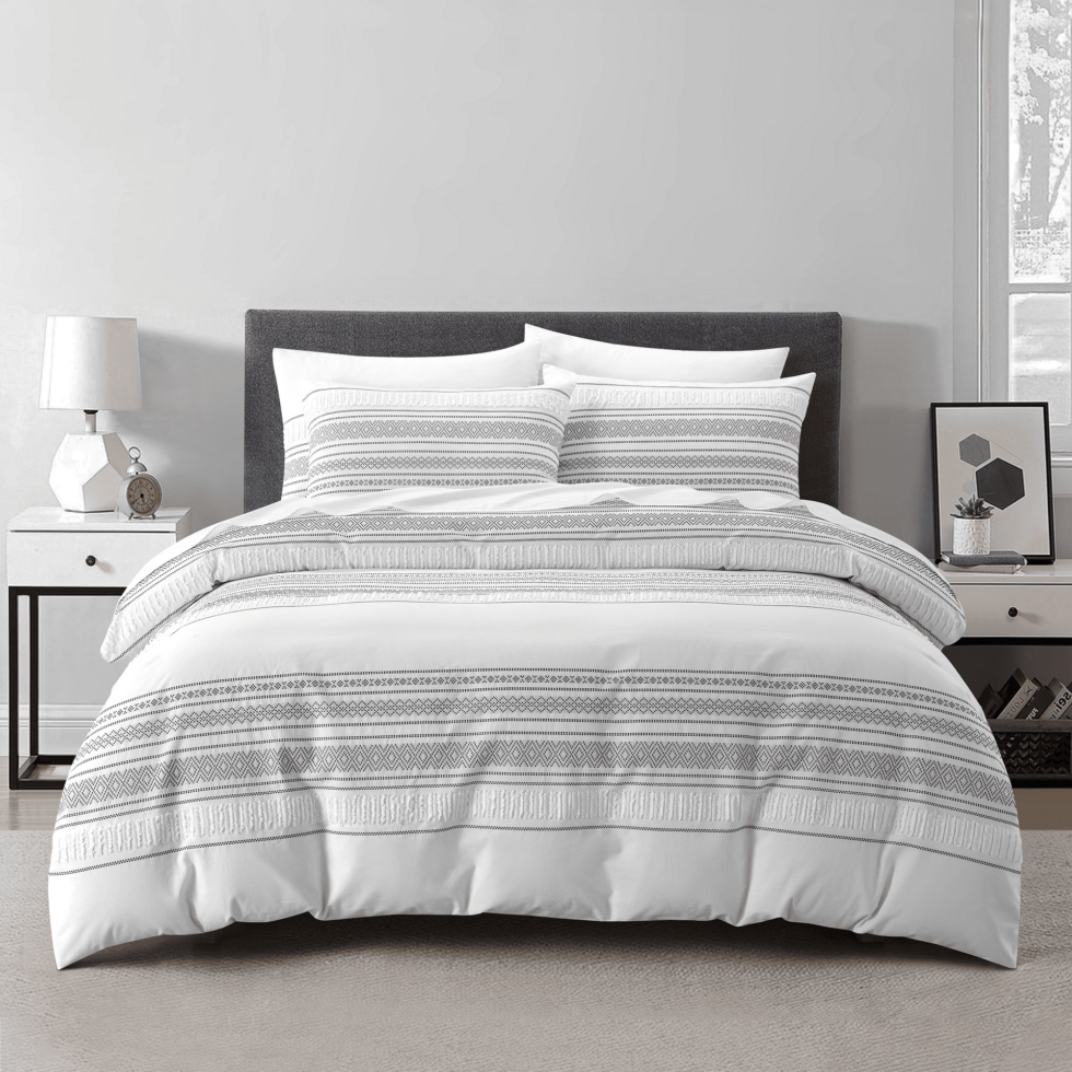 Αυτό το ολοκληρωμένο σετ περιλαμβάνει άψογα συνδυασμένα καλύμματα μαξιλαριών, καλύμματα παπλώματος και ενδεχομένως σεντόνι με λάστιχο, που προσδίδουν στο κρεβάτι σας μια αρμονική και περιποιημένη εμφάνιση. Τα κλινοσκεπάσματα JASY δεν είναι μόνο οπτικά ελκυστικά, αλλά και ιδιαίτερα ανθεκτικά και εύκολα στη φροντίδα. Είναι μακράς διάρκειας και διατηρούν το σχήμα και την ένταση των χρωμάτων τους ακόμα και μετά από πολλές πλύσεις.