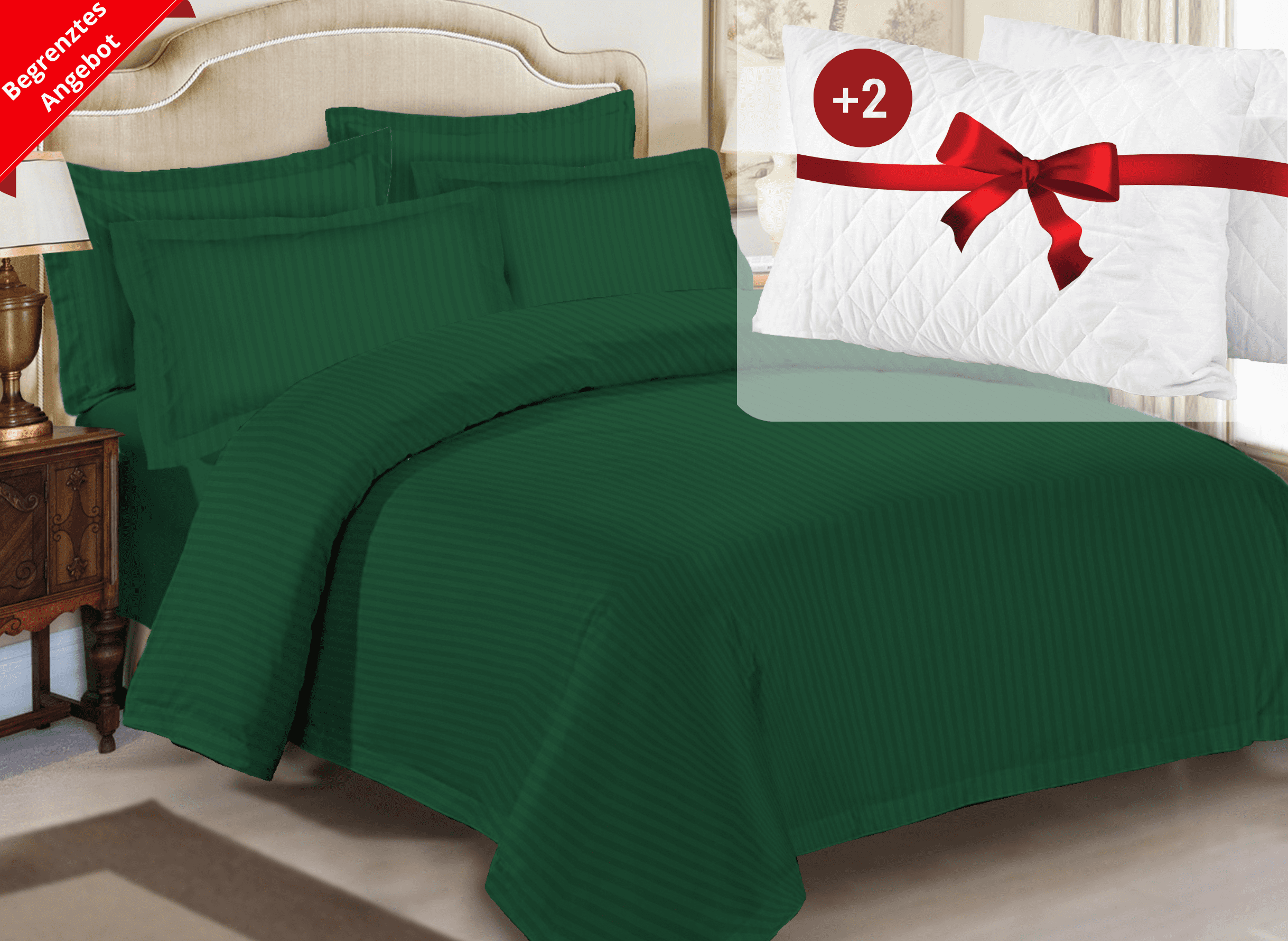 Με κάθε αγορά ενός σετ κλινοσκεπασμάτων, θα λάβετε δωρεάν δώρο: υψηλής ποιότητας μαξιλάρια με φτερά σιλικόνης, που προσφέρουν αντιβακτηριακές και αντιαλλεργικές ιδιότητες – τέλεια για έναν υγιεινό και ανακουφιστικό ύπνο.