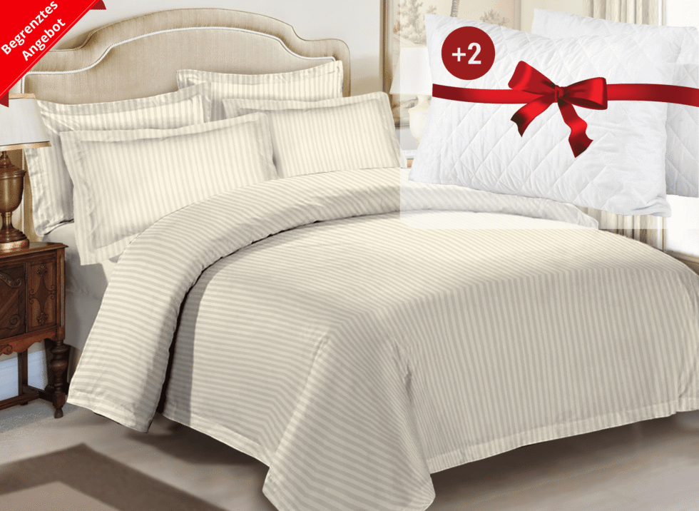 Με κάθε αγορά ενός σετ κλινοσκεπασμάτων, θα λάβετε δωρεάν δώρο: υψηλής ποιότητας μαξιλάρια με φτερά σιλικόνης, που προσφέρουν αντιβακτηριακές και αντιαλλεργικές ιδιότητες – τέλεια για έναν υγιεινό και ανακουφιστικό ύπνο.