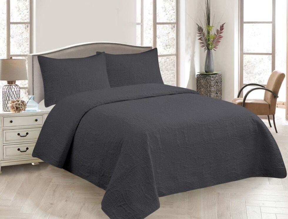 Κάλυμμα κρεβατιού/ριχτάρι + 2 μαξιλαροθήκες ANERY ανάγλυφο- Γκρi