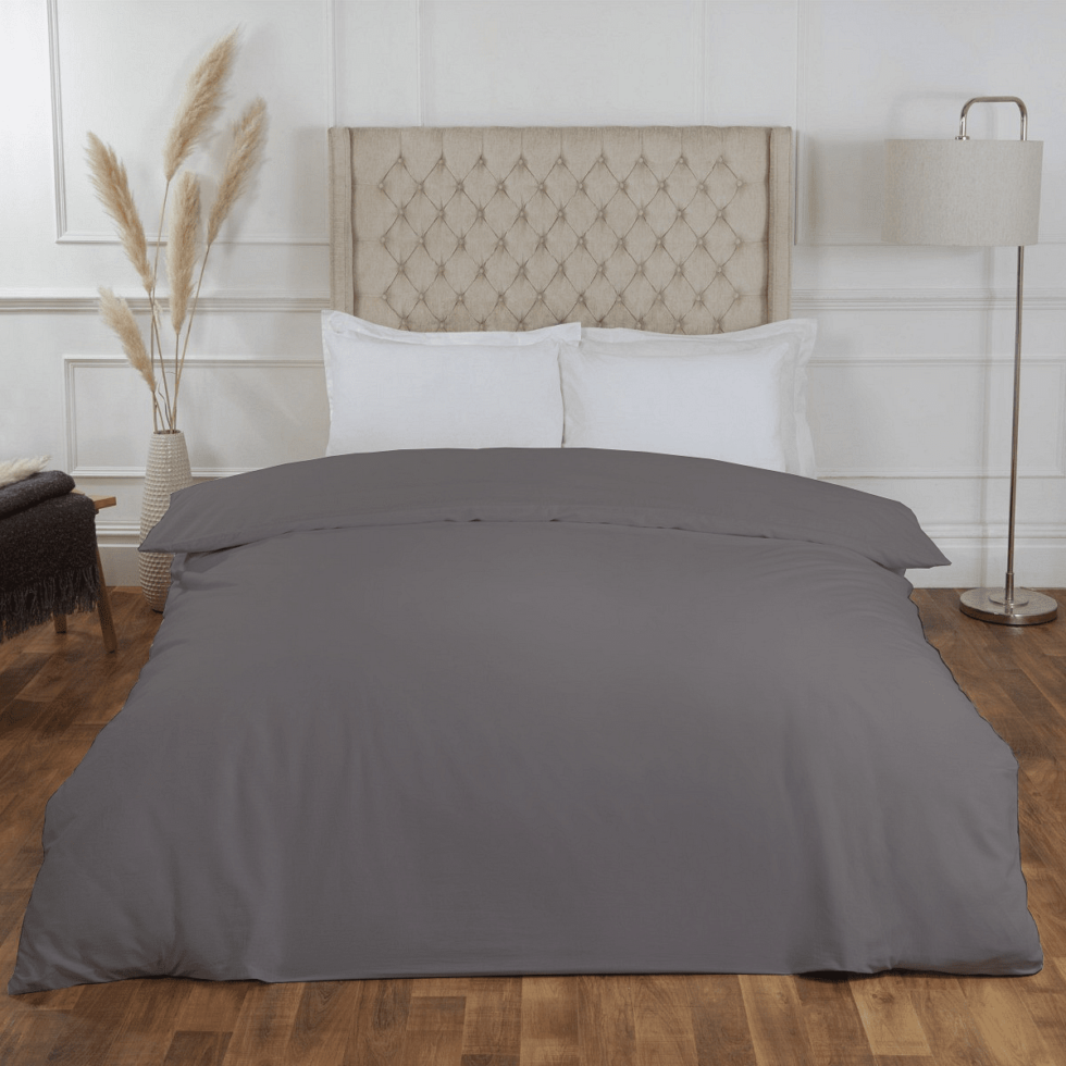 Μονόχρωμη παπλωματοθήκη από βαμβάκι – Σκούρο γκρι